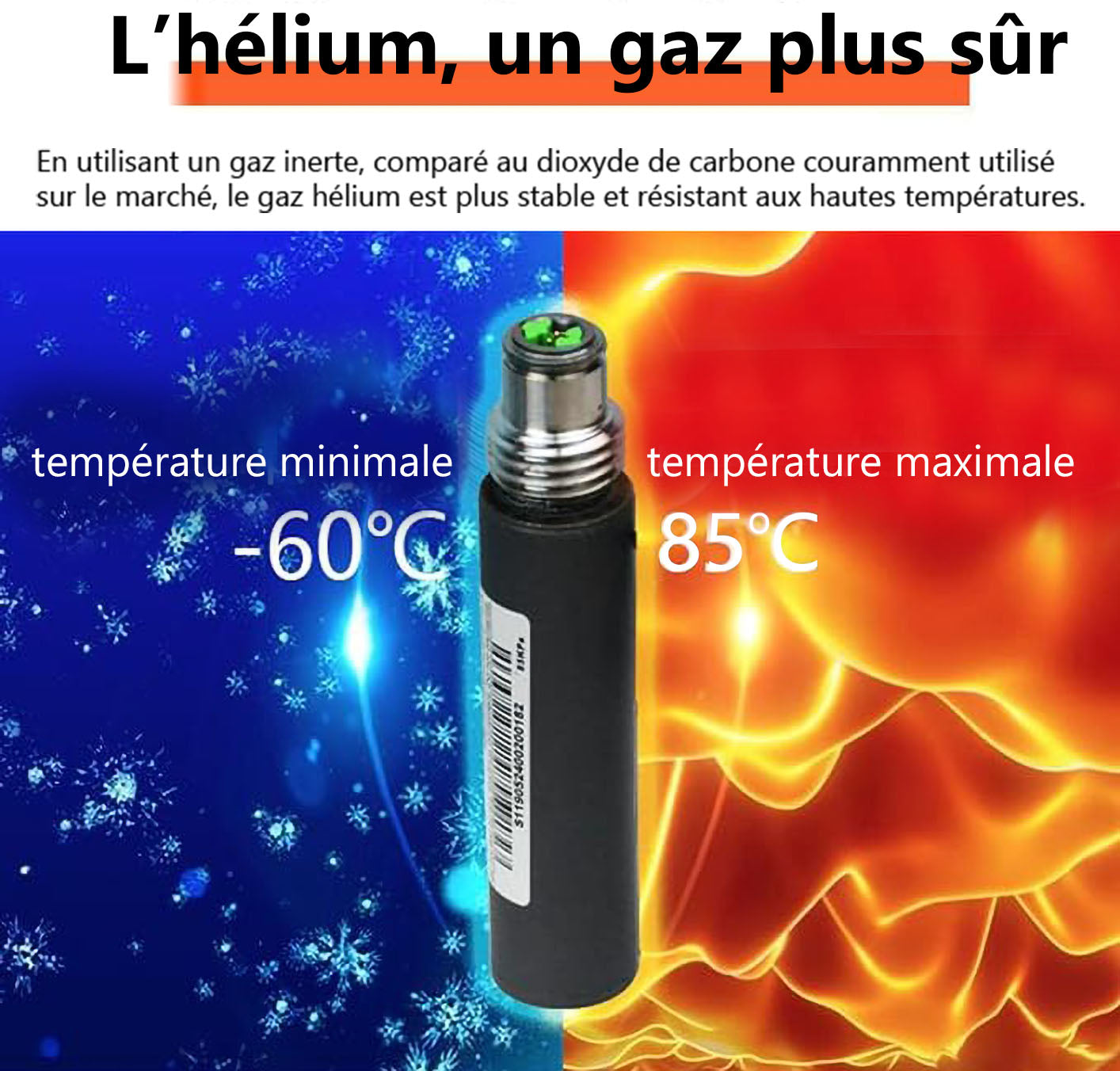 - Il est également muni de deux gonfleurs à hélium intégrés. Dès qu’ils reçoivent les données du capteur, ils libèrent l’hélium et déploient complètement l’airbag en 0,08 seconde.