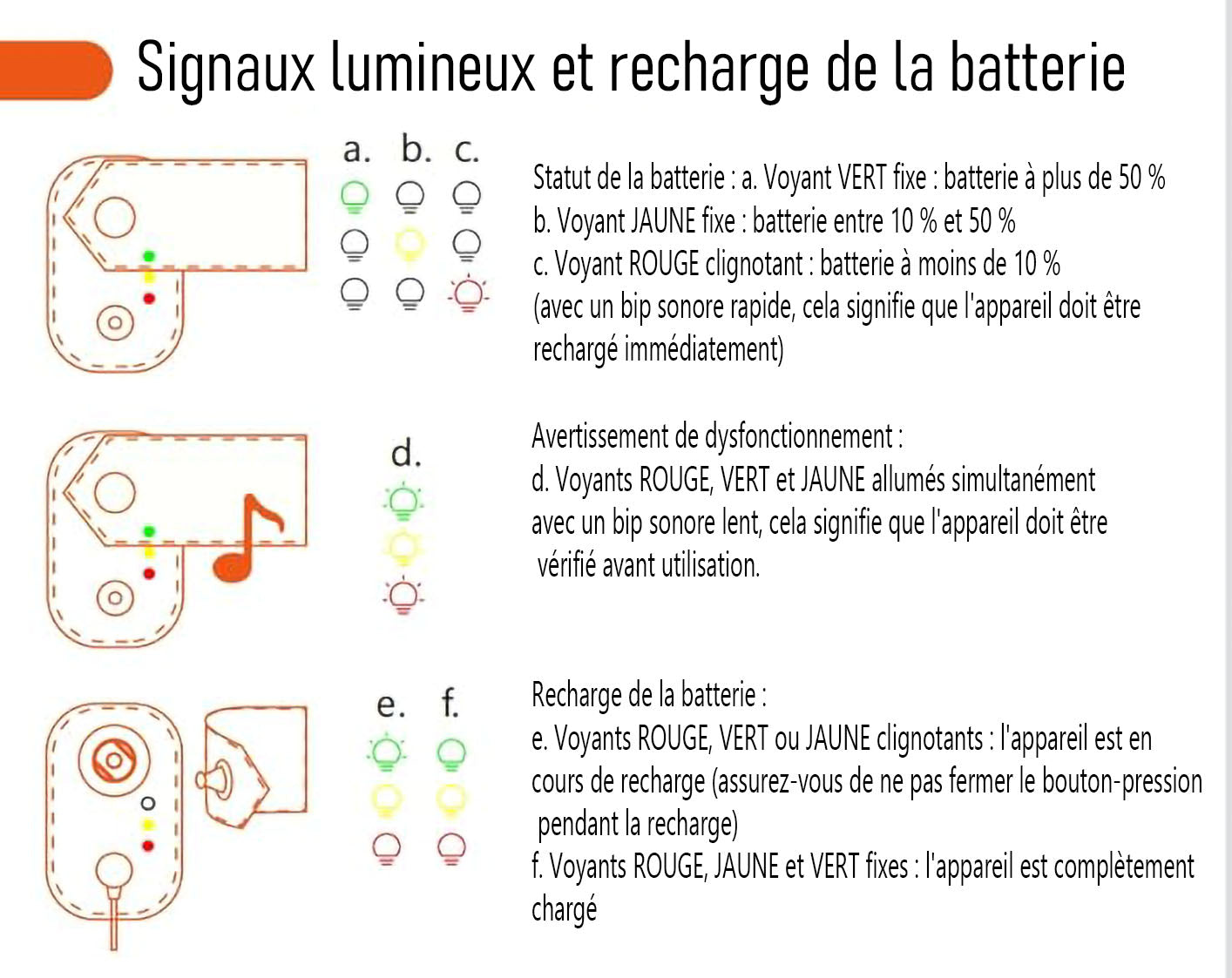 MODE D'UTILISATION : Ce gilet intelligent, équipé d'un capteur de chute intégré, collecte les données corporelles en temps réel à une fréquence de 1 000 fois par seconde. Grâce à un algorithme intelligent, il est capable de distinguer en un instant un mouvement normal d'une chute accidentelle. En cas de chute détectée, l’airbag se déploie en seulement 0,08 seconde. Le capteur, doté d’une batterie haute capacité de 5 000 mAh, se recharge facilement via un câble Type-C et émet une alerte en cas de faible niveau de batterie.