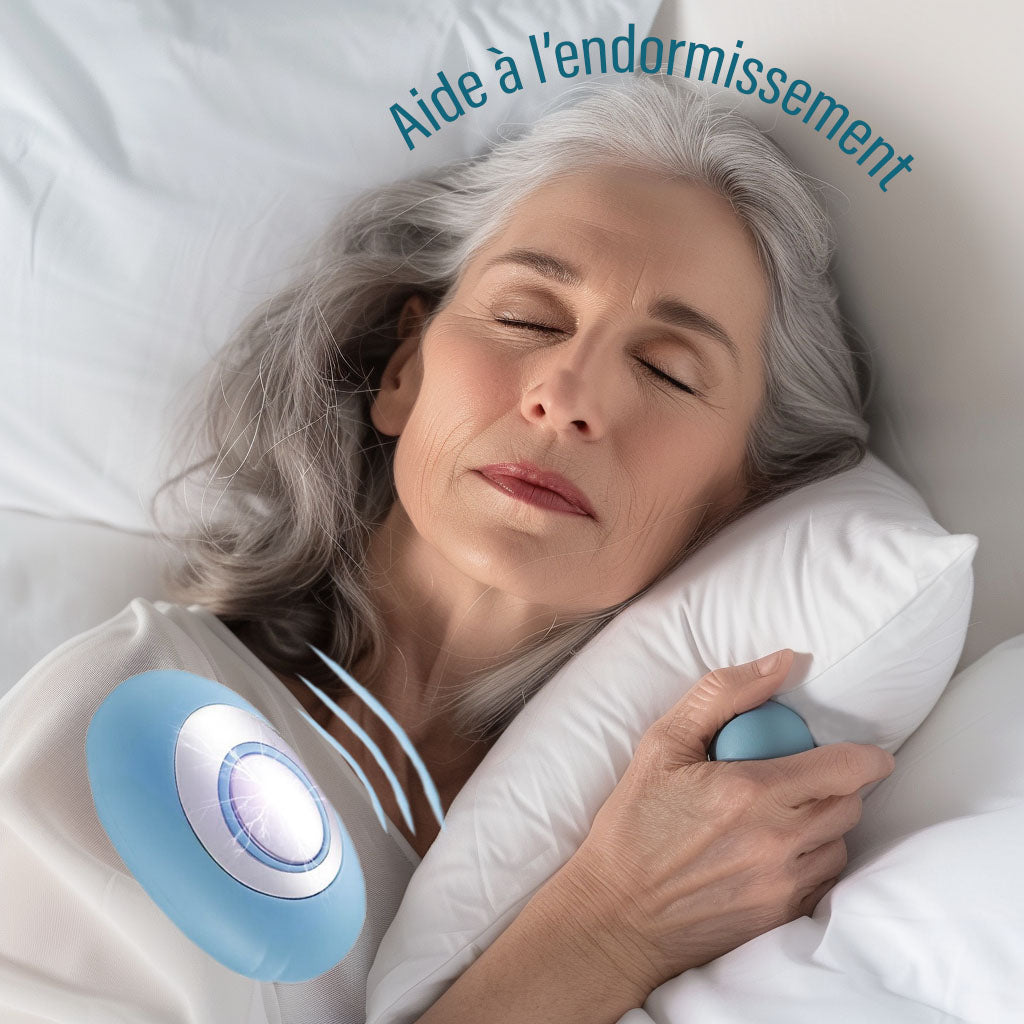 - Dispositif d'aide au sommeil portatif : Ce dispositif est conçu pour vous aider à améliorer votre sommeil, où que vous soyez. Il est facilement transportable, ce qui vous permet de l'utiliser à la maison, en voyage ou au bureau.